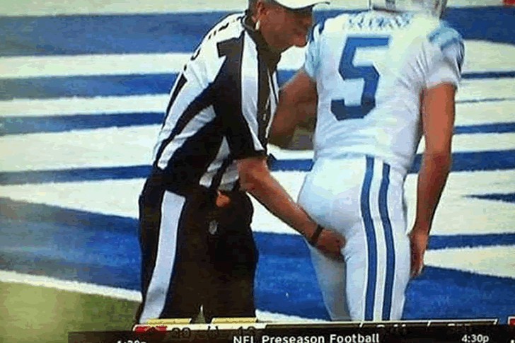 Well, there you have it, looks like the referee took the 'butt-check' strategy a little too seriously. We can only hope there are no hard feelings and the player forgives this accidental 'booty blunder'. It's almost as if the game scored an unexpected 'touchdown,' but in a very unusual way!